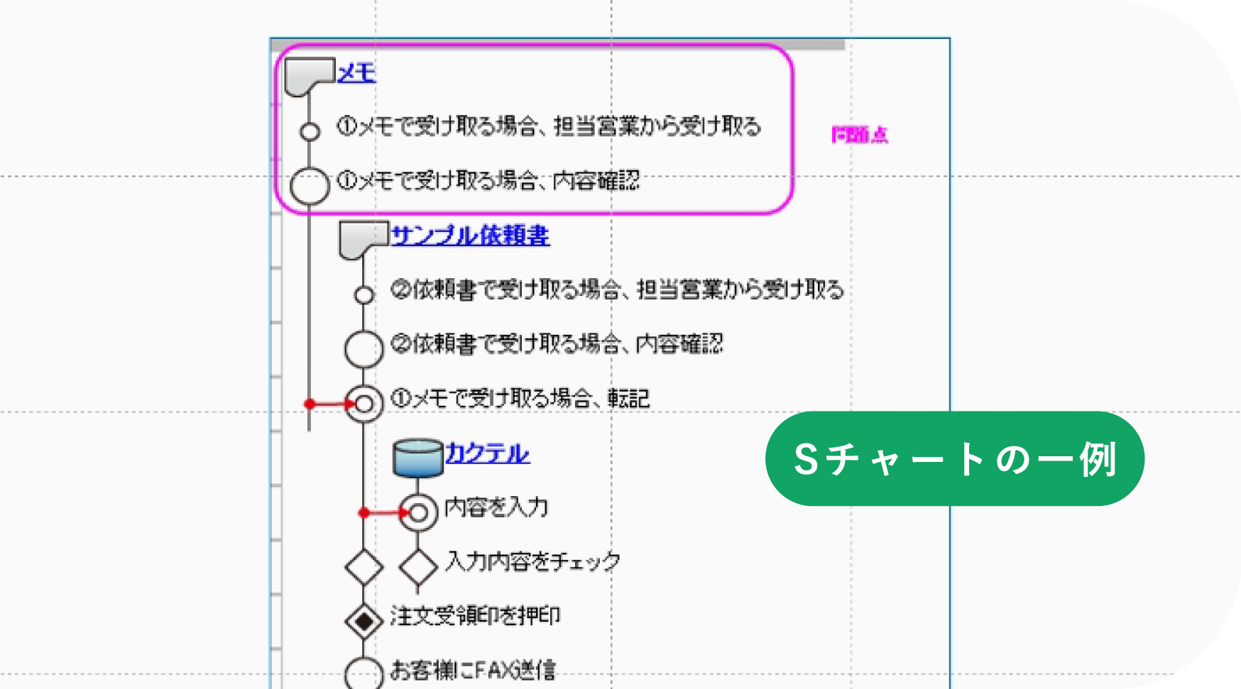 次に見える化された業務について開始から6ヶ月以内に全てSチャート化いたしました。
