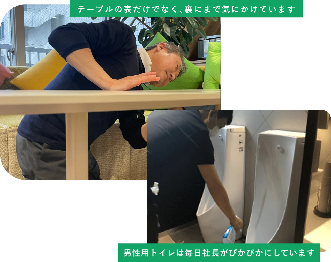 環境整備の時間を確保すべく予定を組み、今ある状態以上にするためにハード面、ソフト面の両輪で徹底的に考え実践をしています。